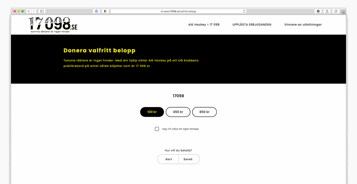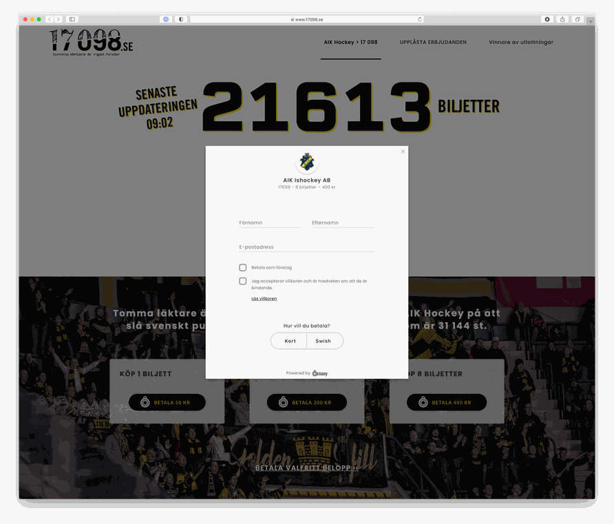 AIK slog under våren sitt gamla klubbrekord från förr som var 17 098 stycken sålda biljetter. Med en webbsida gjord med Snowfire och med Donationsplattformen Octany, så fick alla fans en enkel och snabb möjlighet att bidra direkt med pengar på de sätt (Swish, kort, Autogiro) som de själva valde för att köpa digitala sittplatser som kostade allt från en biljett för 50 kr upp till 400 kr för en gruppbiljett.