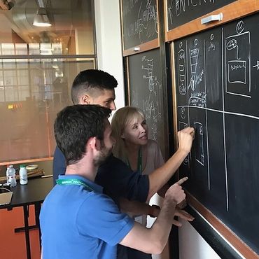 Se bilderna nedan på det som vi på Snowfire kallar "göra-veckan" Det är då våra "skills" tillsammans med de andra design- och Softwarementorerna sätts på prov. Vi hjälper studenterna att realisera sina idéer och skapa appar med användarvänlig design och fungerande kod. Investerarna står sedan på kö för att utvärdera hur väl studenterna lyckas.